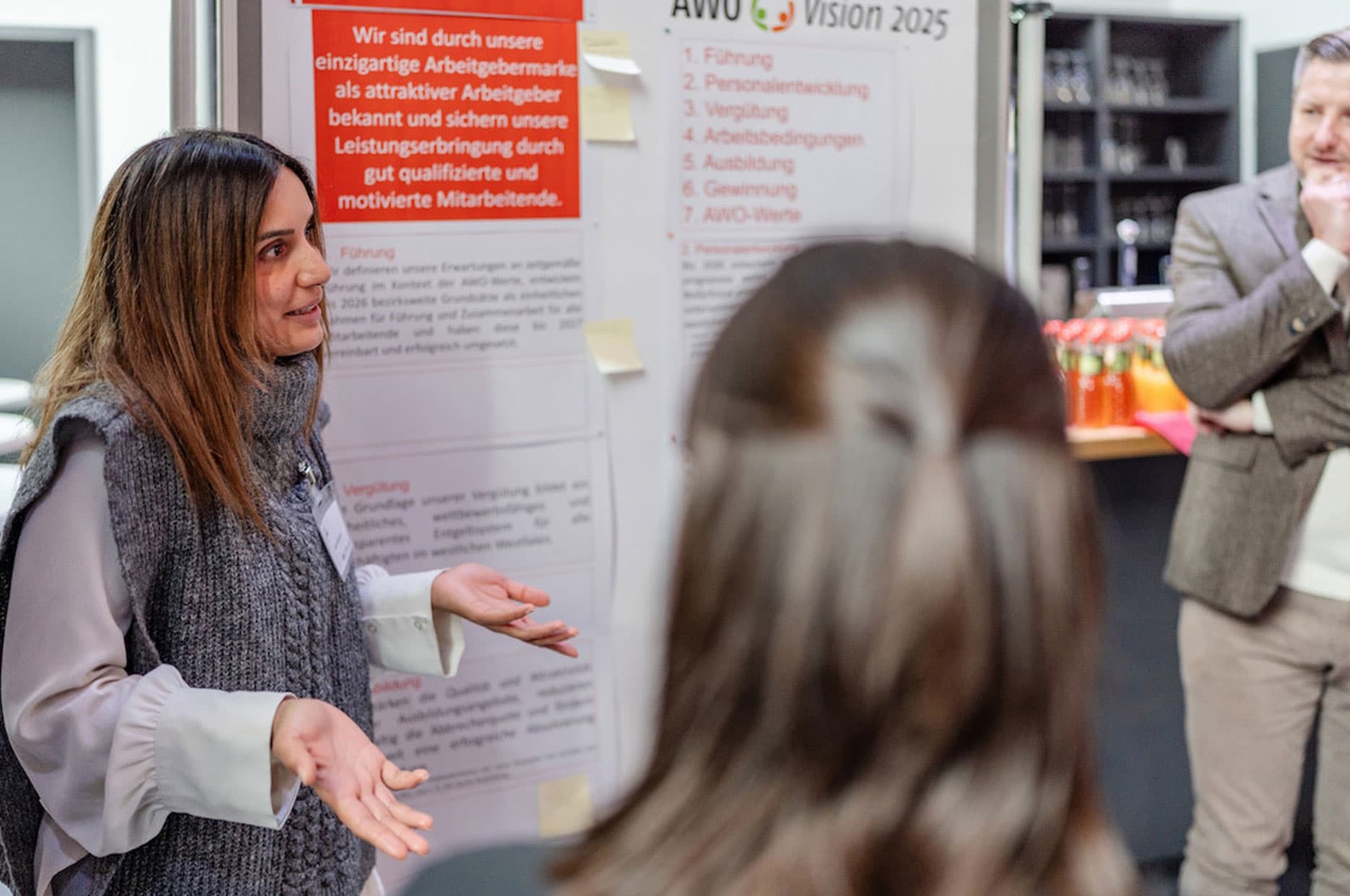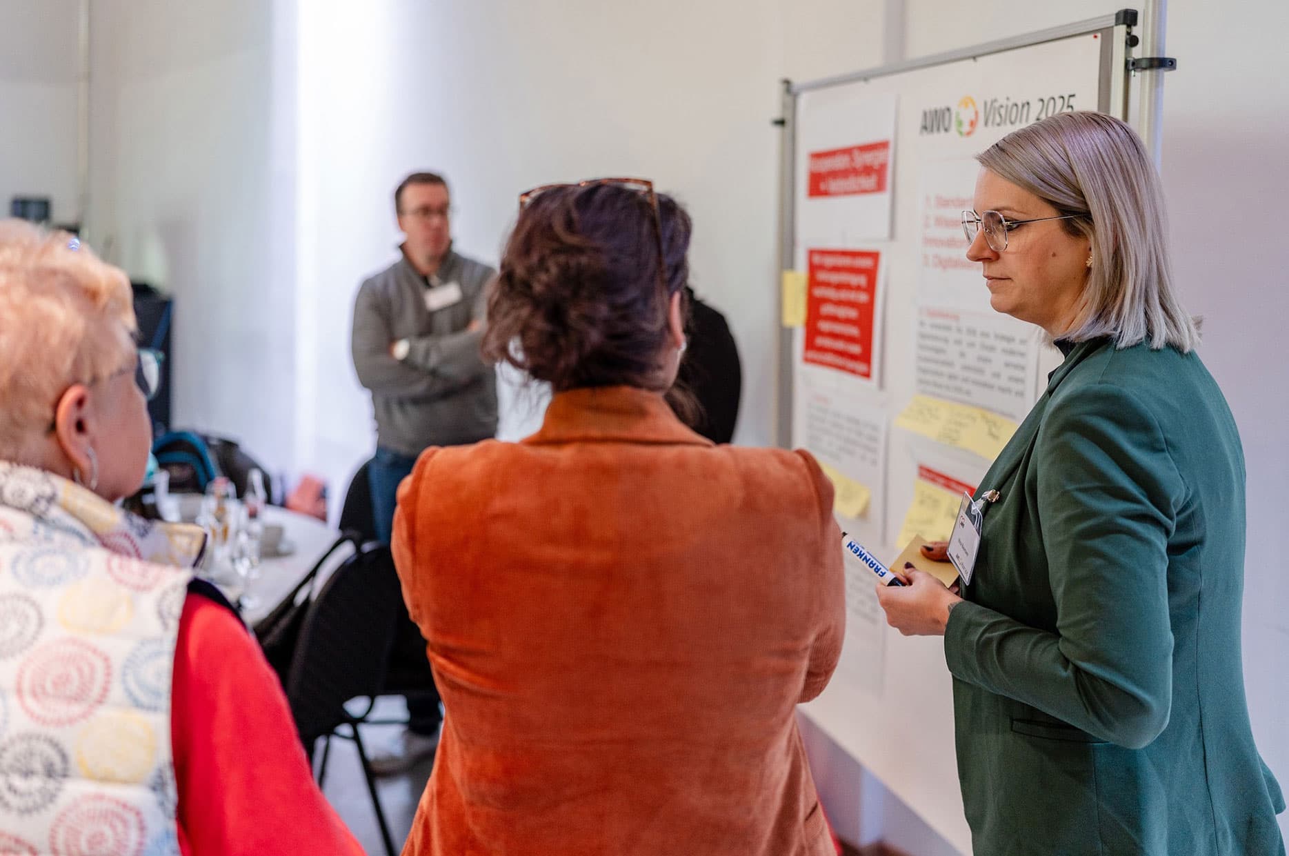 Die Teilergebnisse des Tableaus wurden von (Unterbezirks-)Geschäftsführer*innen und Fachleuten aus den Geschäftsfeldern im Tandem erläutert und in Kleingruppen diskutiert. Hier wurden Formulierungen angepasst und noch die einen oder anderen Ergänzungen vorgenommen.